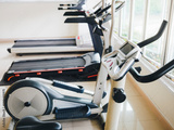 Sports equipment in Gym Exercising Fitness Running track and Aerobic spinning bikes