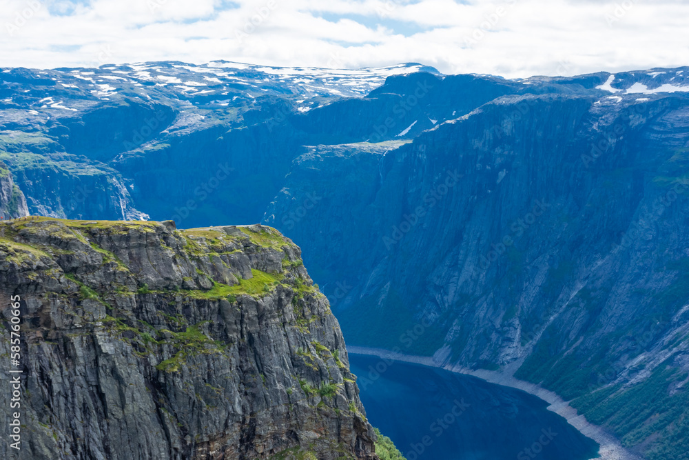 Amazing cliff over the Ringedalsvatnet lake in Trolltunga mounatin area, Norway