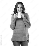 Portrait of a happy woman drinking coffee while relaxing isolated on a transparent, png background. tea, hot beverage and smiling female relaxing with a cafe drink for health and wellness with peace