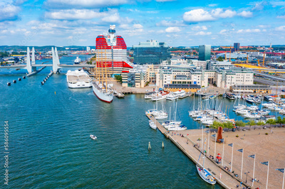 Lilla Bommen building and Barken Viking ship in the swedish city Goteborg.