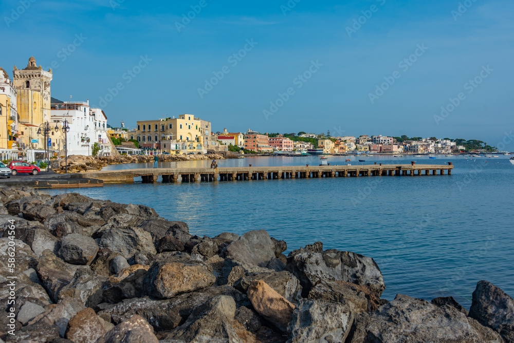 Seaside view of Porto d'Ischia town at Ischia island, Italy