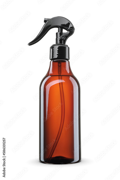 Amber brown blank plastic trigger sprayer detergent bottle isolated on white background.