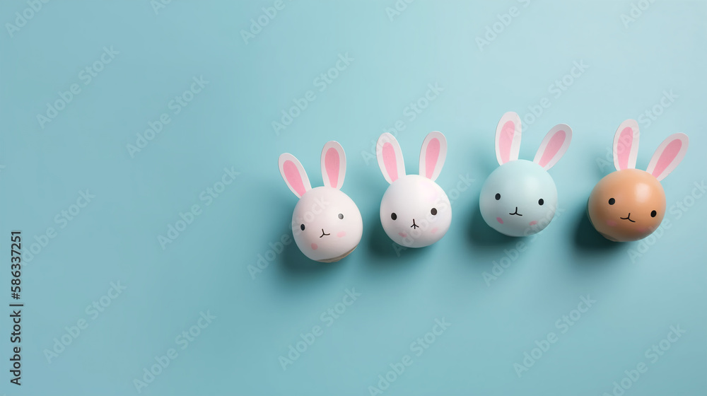 Happy Easter Day background and backdrop, cute bunny rabbit, ornament, and colorful egg, copy space greeting and backdrop, banner, rustic vintage design material. Celebrate Easter.