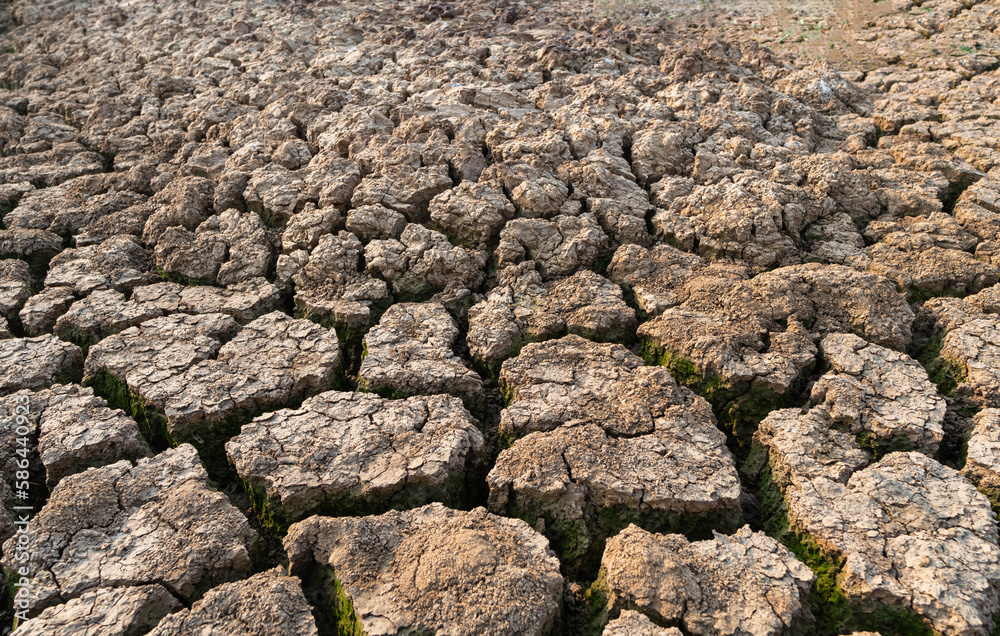 Dry water crisis deep cracks land symbolize hot weather and drought.