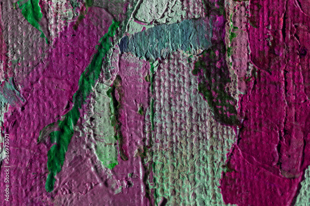Abstract background closeup of a painting with brushstrokes. Rough art paint smear. Large multicolor spots of brush strokes and palette knife on the canvas