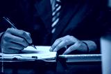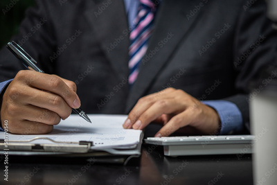 Business person Writing contract law and paper work for business and finance, write document, complete job application forms, contract real estate and insurance concept.