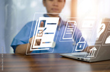 Doctor using technology document management on computer system management for cardiologist Specialist in treating heart disease for treatment in hospital , DMS document management concept