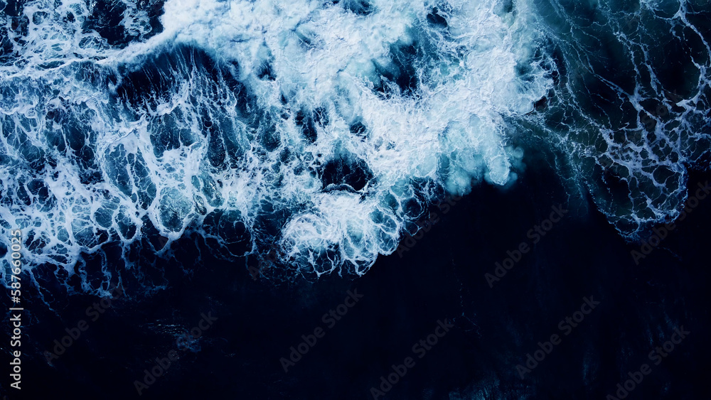 Top view dark blue sea water wave Big wave in black sea Top-down form aerial view Drone high quality camera.