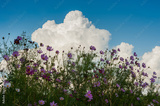 Beautiful cosmos flowers in garden under sky