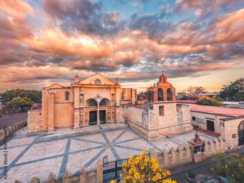 Atardecer en la Catedral Primada de America, Zona Colonial, Santo Domingo, República Dominicana.