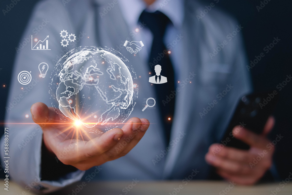 business people use Global internet connection application technology for business and digital marketing. finance and banking digital link technology big data