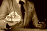 Cloud computing diagram shown in hand cloud technology storage The concept of networks and internet services.