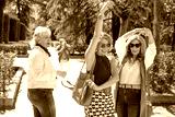 group of middle-aged friends dancing flamenco while being filmed by a friend with a camera
