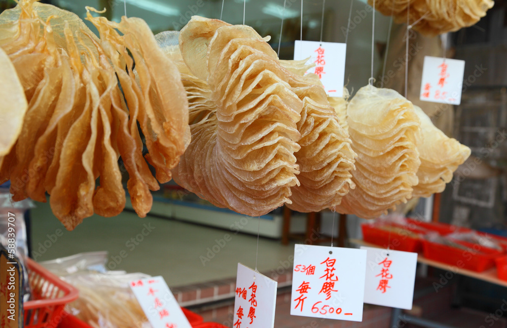 Dried fish for sale in chinese fishing village Tai O, Hong Kong