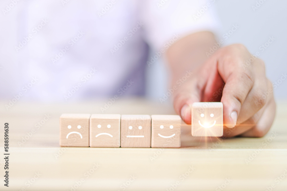 Customers show ratings with happy icons. customer satisfaction survey concept copy space