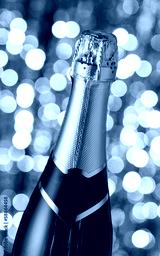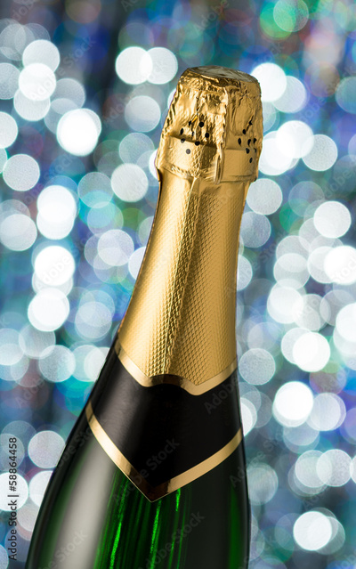 Bottle of champagne,on a holiday bokeh background
