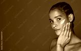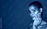 Portrait of black middle aged woman applying anti-aging or moisturising face cream, brown background, copy space
