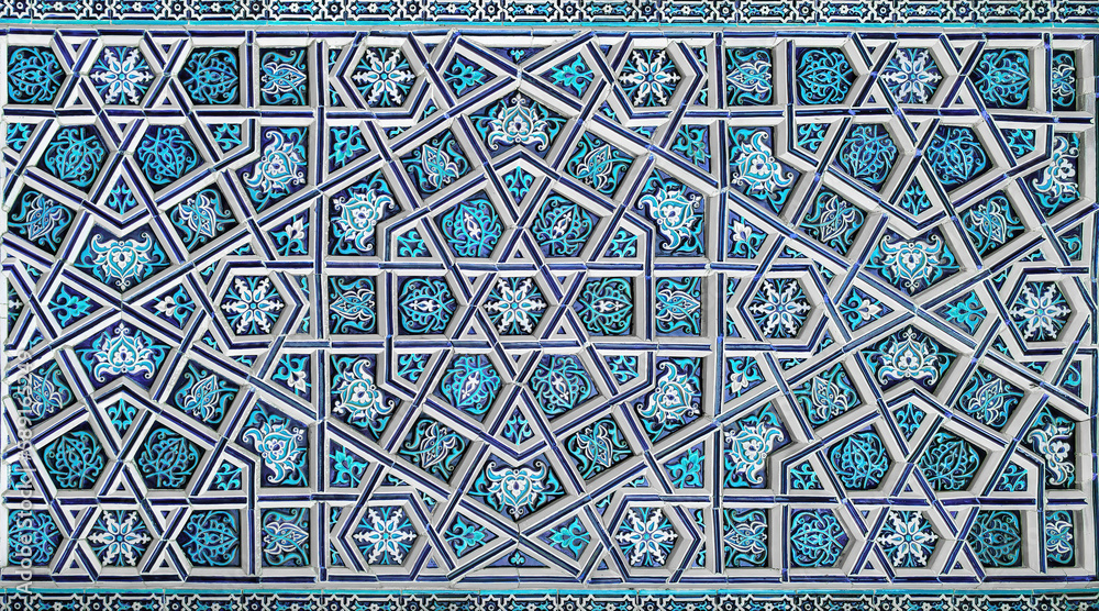 Geometric traditional Islamic ornament. Fragment of a ceramic mosaic.