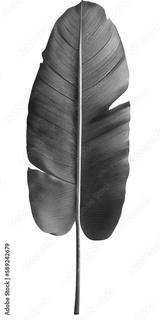 long green leaf on transparent background, banana leaf on isolated white background, traveler palm leaf