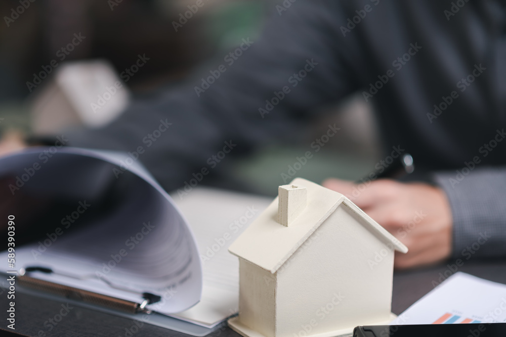 real estate agent Review client's loan documents ,Investment loan approval concepts to build residential homes, mortgages and bank loans ,real estate business, home insurance and investment loan