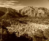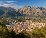 The view of Pollenca town close to sunset from the top of puig Maria Majorca Spain