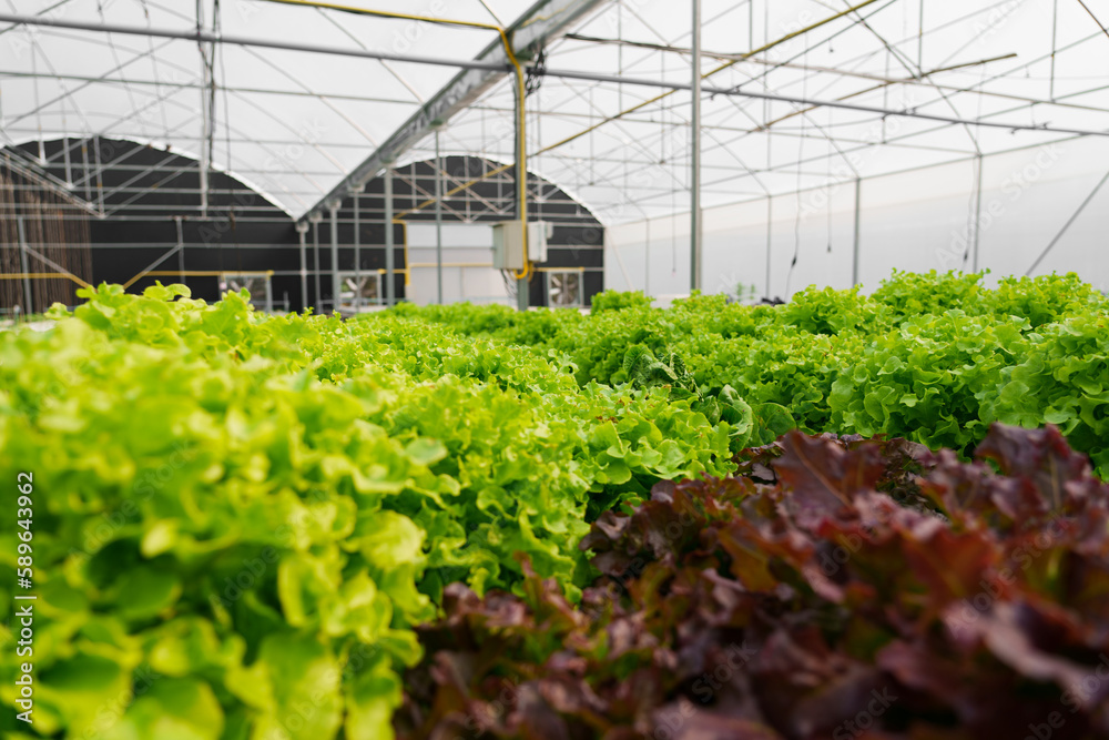 Fresh vegetable hydroponic system..Organic vegetables salad growing garden hydroponic farm Freshly harvested lettuce organic for health food Earths day concept..