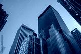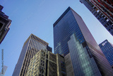 new york manhattan skyscrapers view from the street to the top of the building on sunny clear day