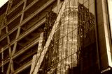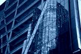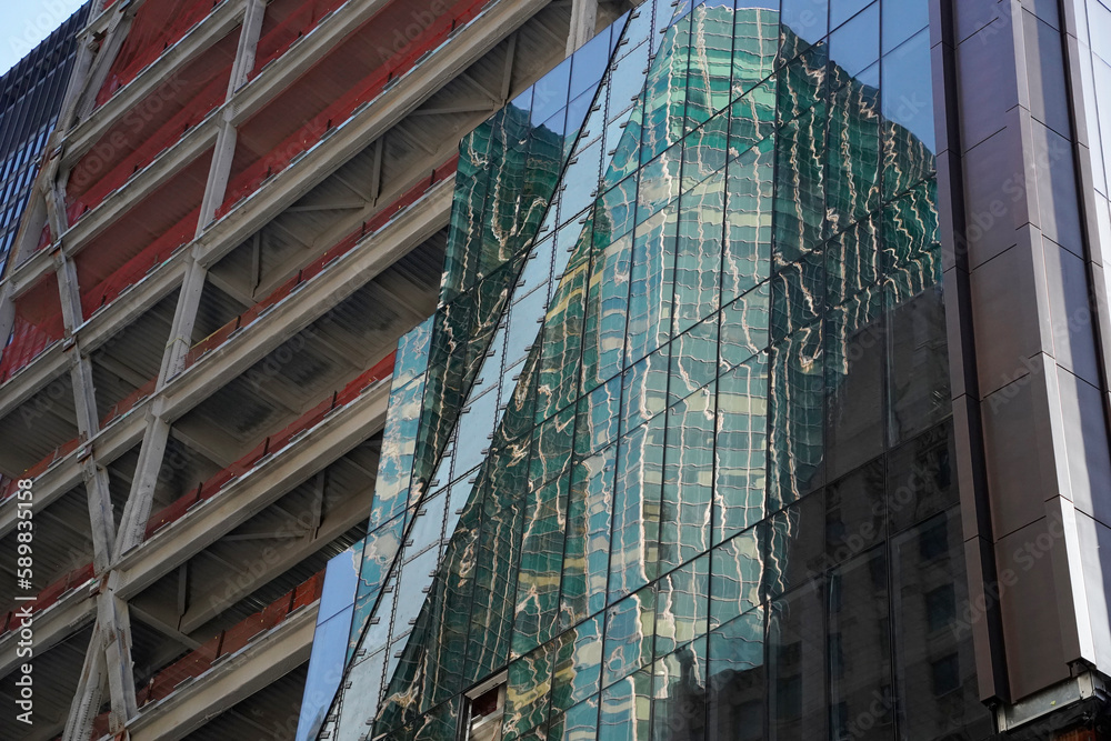 renovation of new york manhattan skyscrapers view from the street to the top of the building on sunny clear day
