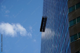 new york manhattan skyscrapers view from the street to the top of the building on sunny clear day