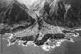 Aerial view of Madeira island. Land meets ocean in Seixal, Madeira, Portugal