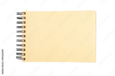 Blank paper page of empty sketchbook, drawing artists notebook, album, spiral bound isolated on white