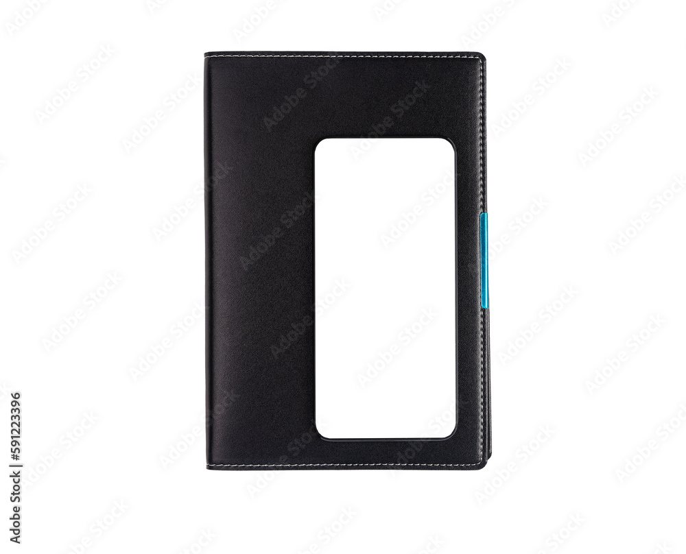 Mobile phone screen mockup on business planner, office organizer for planning app ad isolated on white