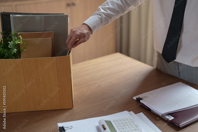 Resignation concept.Businessmen packing Stuff with cardboard box for quit a job..