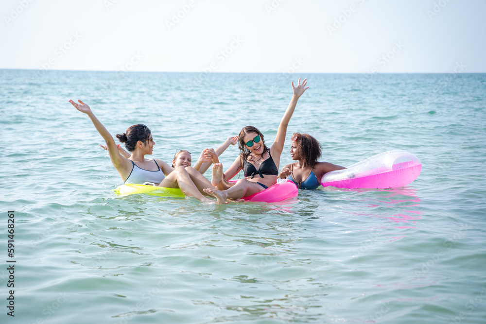 Happy female friends enjoy and fun outdoor activity lifestyle on holiday travel vacation at the sea,Friends fun together on the beach.