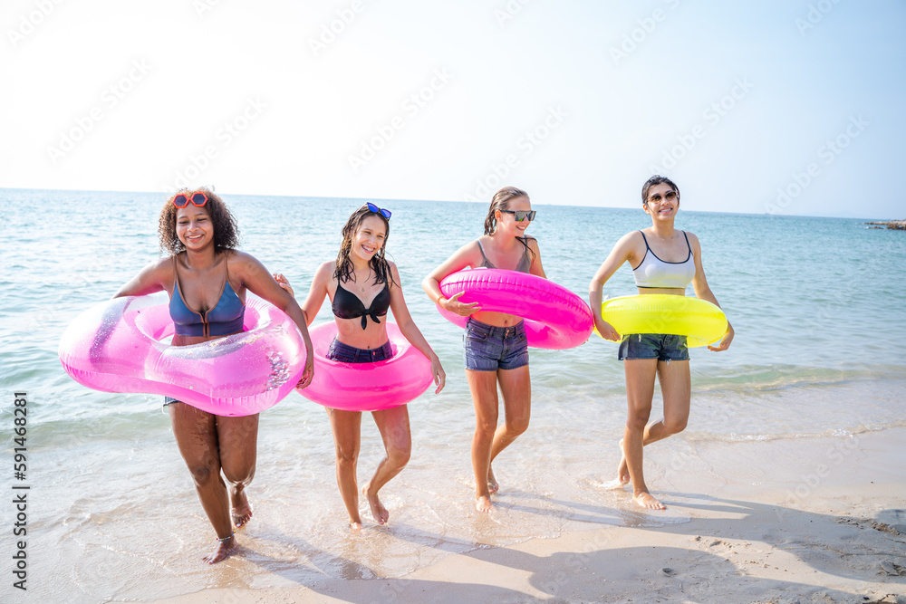 Happy friends having fun on summer vacation on sea beach,Summer vacation.