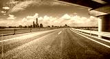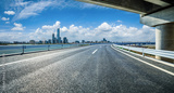 Asphalt road and bridge with city skyline in Suzhou, China.