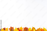 Frame made of colourful autumn leaves isolated on white table. Fall concept. Flat lay