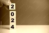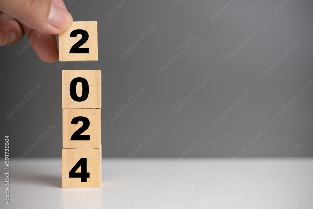 wood cube block 2024 business growth concept. New year business goals, plan and strategy.