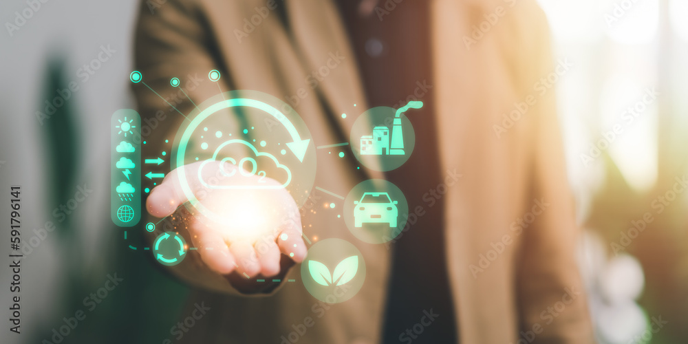 concept of Sustainable and environmentally friendly business and industrial development ,carbon renewable energy agreement ,reducing greenhouse gas emissions ,Managing Carbon Dioxide Emissions