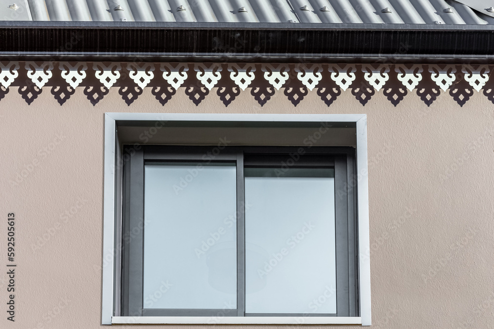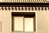 Fenêtre coulissante, gouttière et lambrequins de maison créole
