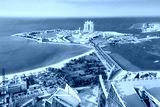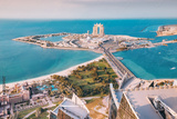 Aerial view of the skyscrapers of Abu Dhabi, the peninsula and the Persian Gulf Sea. Must visit landmarks of United Arab Emirates. Real estate and economy
