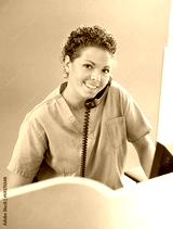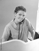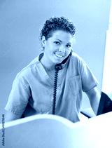 Nurse Answering Telephone While Working At Reception