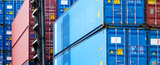 Container logistic. Cargo and shipping business. Container ship for import and export logistic. Container freight station. Logistic industry from port to port. Container at harbor for truck transport.