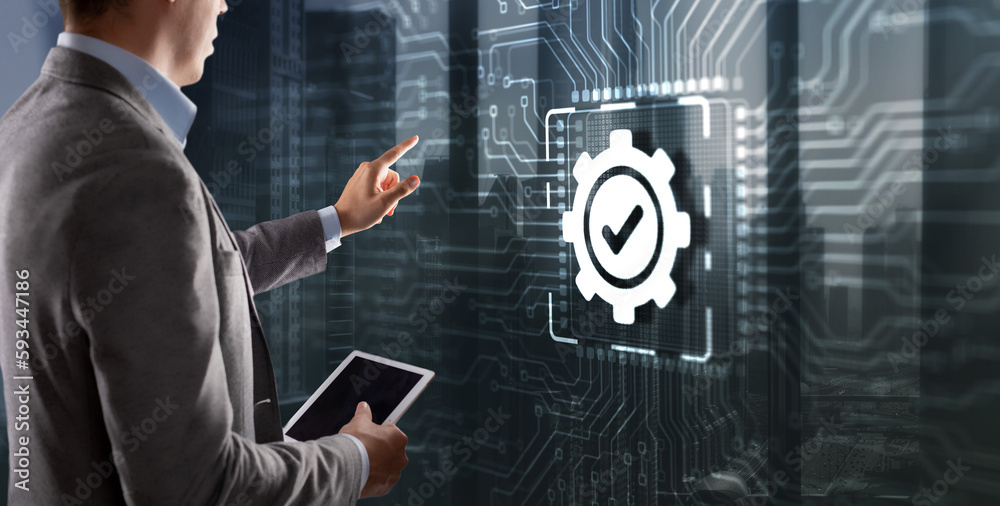 Clicking on the virtual screen: Quality Control Business Technology Concept