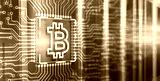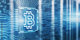 Bitcoin Cryptocurrency concept. Mining factory. 3d Electronic Circuit Board Chip