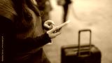 Tourist with luggage using smartphone checking trip for travel..