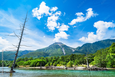 夏の上高地 焼岳と立ち枯れ木【長野県・松本市】 Kamikochi in summer. Mt.Yakedake and coniferous trees