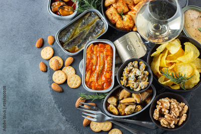 Assortment of Tinned fish, canned food ready for date night