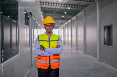 Asia people are engineer concept, Indian man engineer standing confident in factory