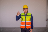 Asian Engineer standing in factory posting confident , Engineer construction happy job success with in target planning
